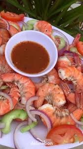 Camarones guisados con mantequilla, bañados en salsa de tomate con pimiento morrón, cebolla y zanahoria. Acompañados con arroz, ensalada y papas.