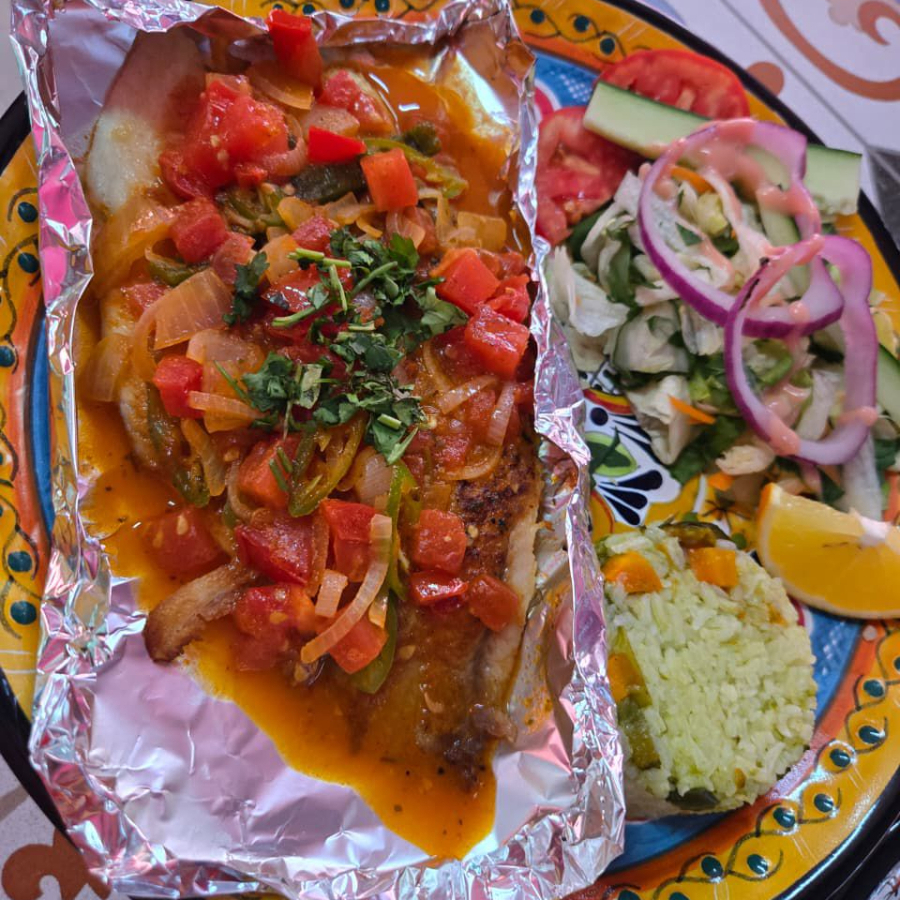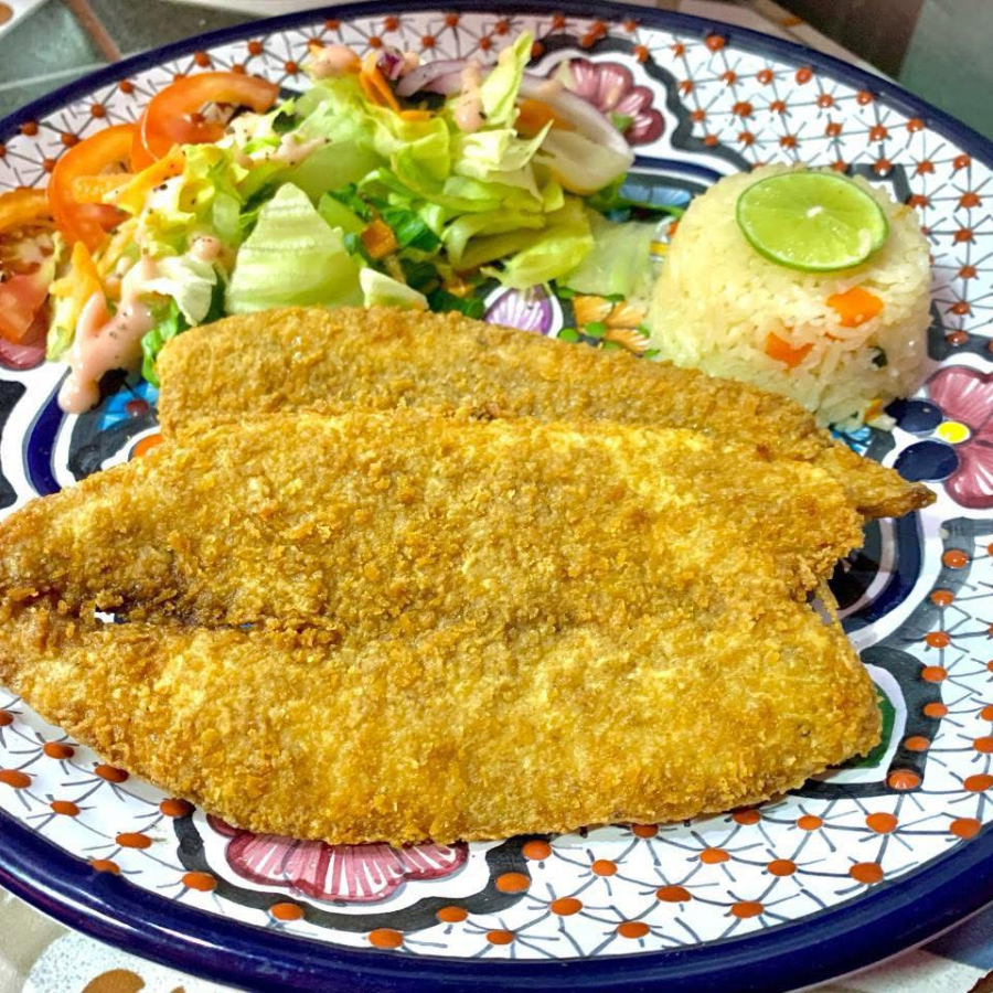 650 gramos de Pescado Tilapia Acompañado de Arroz, Ensalada,Tortillas y salsas