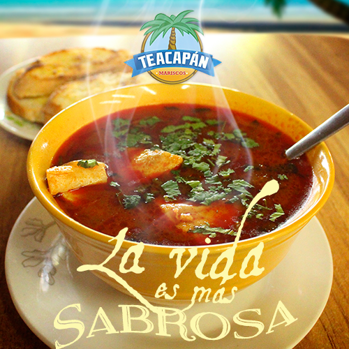 Variedad de mariscos, sazonados y mezclados con arroz, con el inconfundible sabor Teacapan.