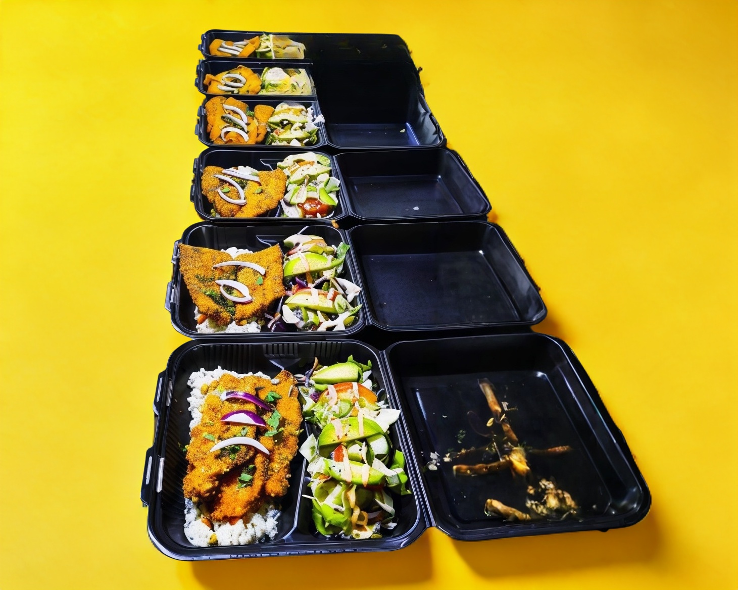 2 camarones teacapan, 2 camarones tocineta, 2 camarones empanizados, 2 medios filetes de pescado empanizados, 2 quesadillas de marlín y chicharrón de pescado.