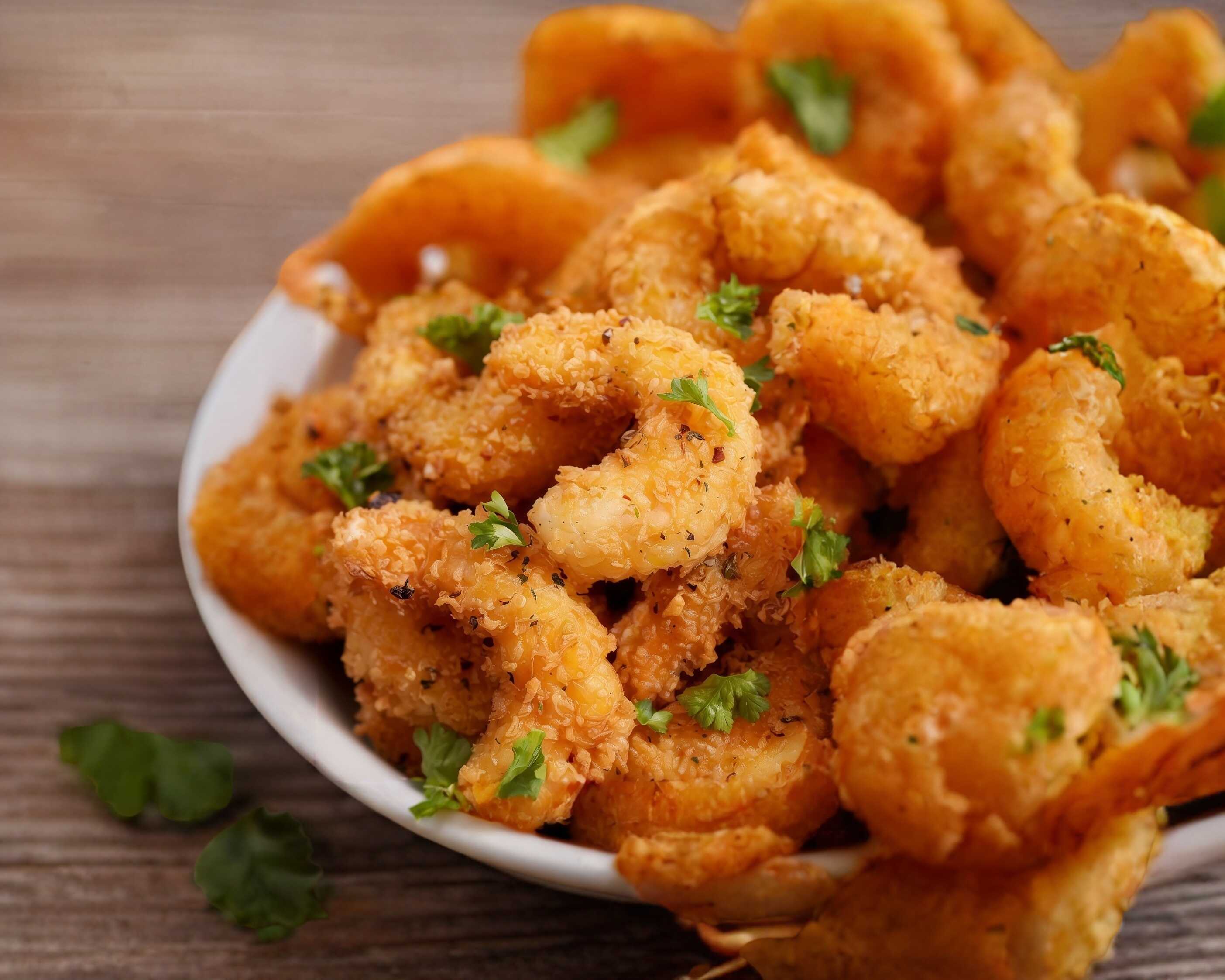 6 Camarones con corte mariposa, rellenos de queso crema y posteriormente empanizados. Acompañados de arroz, pan y ensalada.