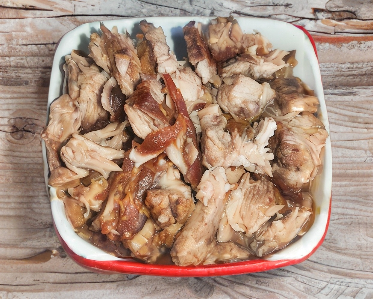 Pescado tilapia, acompañado de apio, cebolla, zanahoria, papa y especies.