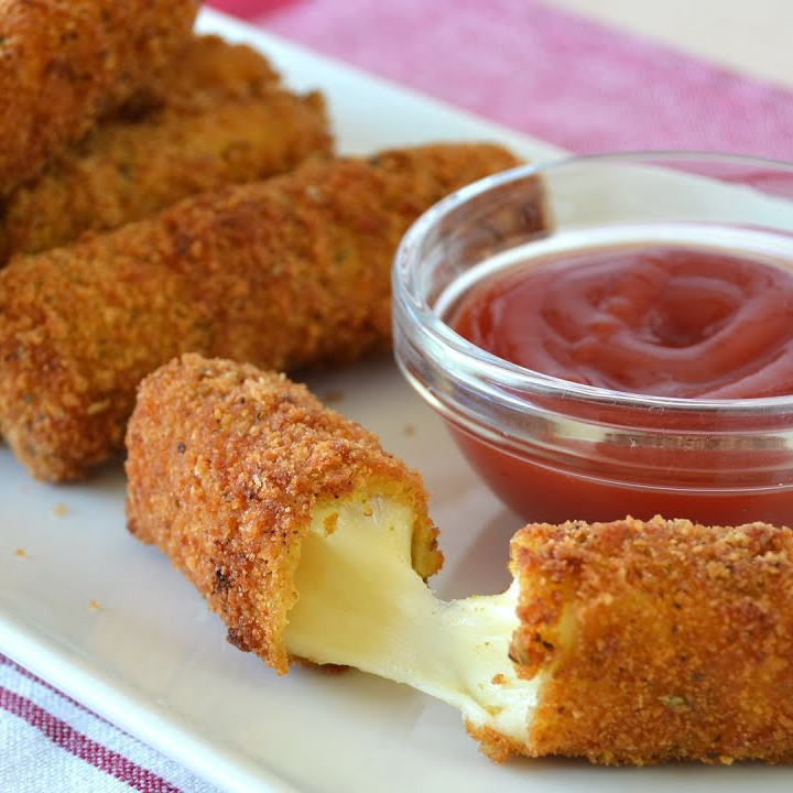6 Piezas de dedos de queso acompañados con papas a la francesa y de cátsup.