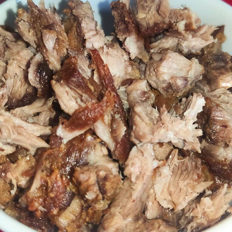 Carnitas surtidas acompañada de tortillas, limones, salsa y verdura