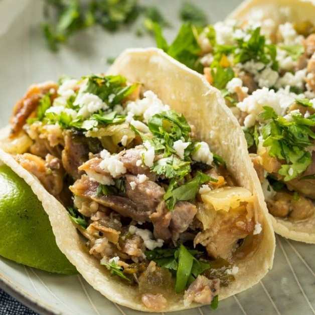 1Taco de carnitas o surtido con cebolla y cilantro, salsa, y limon