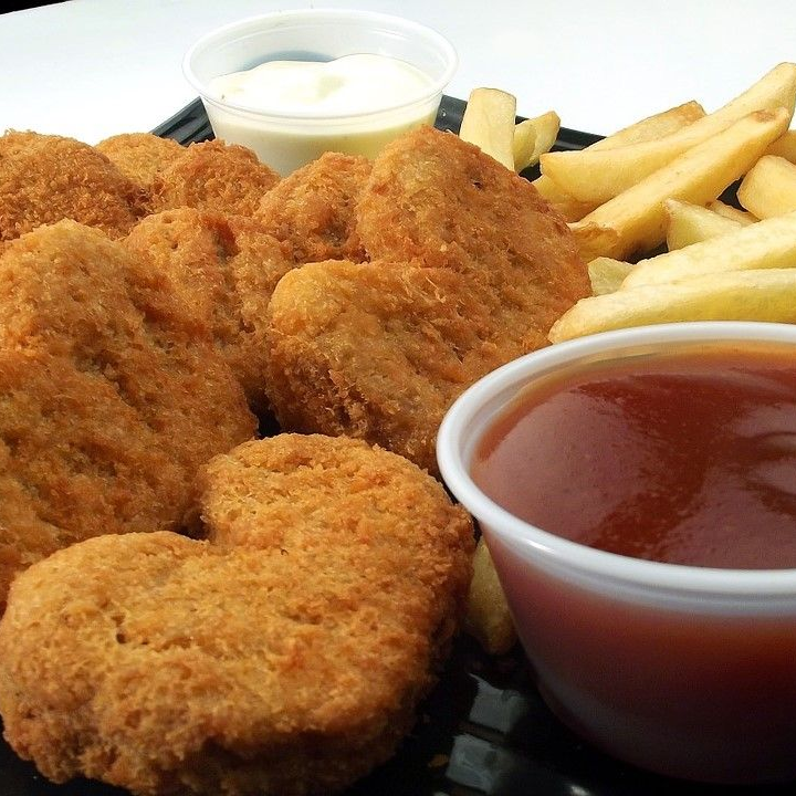 7 Nuggets de pollo acompañado de papas a la francesa y catsup