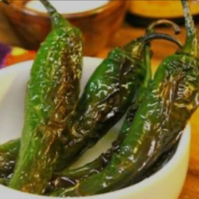 1 taco de chilaca rellleno de camaron cocido en tortilla de maiz, con ensalada y salsa.