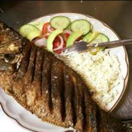 Promo de 2 Mojarras fritas con arroz, ensalada y pan, acompañado con salsa, totopos y limon