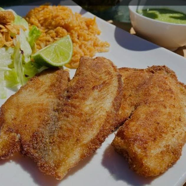 Delicioso filete de pescado empanizado, sobre una cama de lechuga, tomate y cebolla morada, bañado en nuestra salsa especial diabla, acompañado con papas a la francesa.
