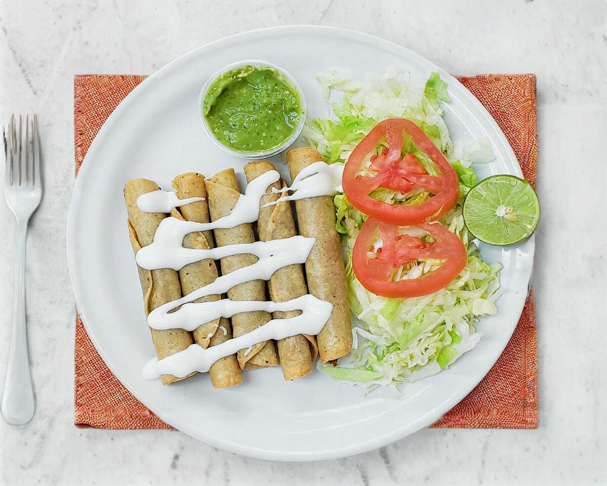 Incluye 5 flautas, crema, salsa y verduras.
