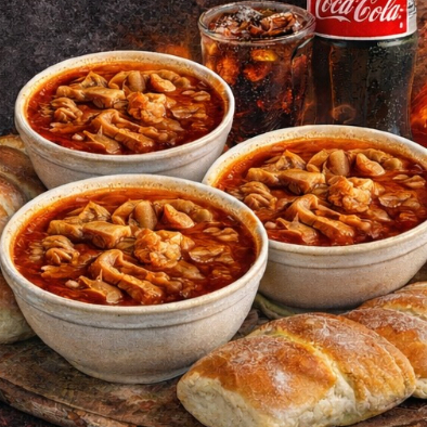 3 Platos Chicos de Menudo, 1 Coca cola 2.5 lts y 3 Panes frances