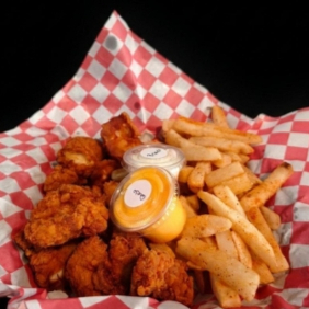 250 Gr de Boneless bañados en tu salsa favorita y 250 Gr de Papas a la francesa.