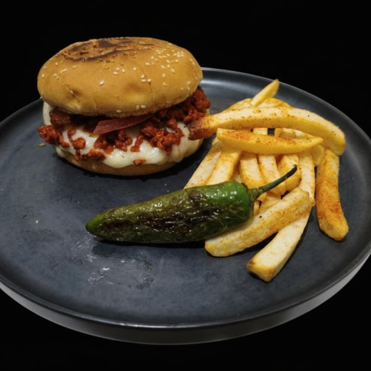 Carne 100% de Res, Carne De Trompo, queso Gratinado, Tomate, Cebolla y Chile Toreado. Incluye Papas a la Francesa