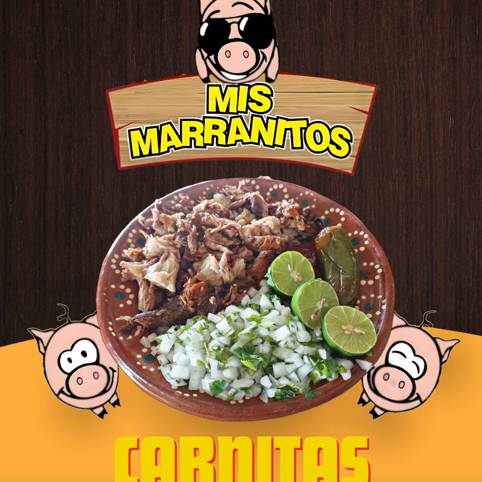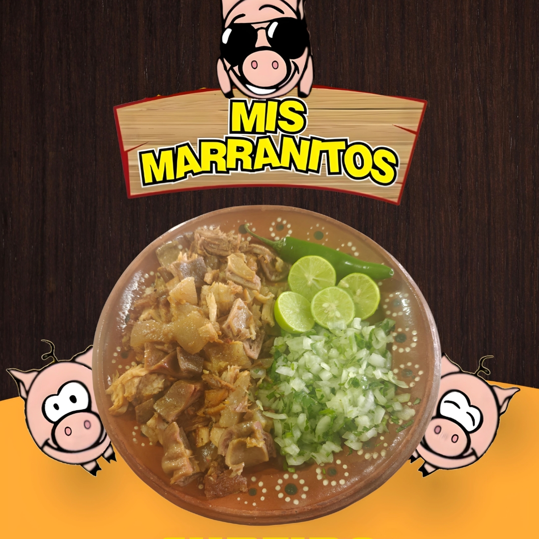 Medio kilo de sabrosas carnitas acompañado de salsas y verdura