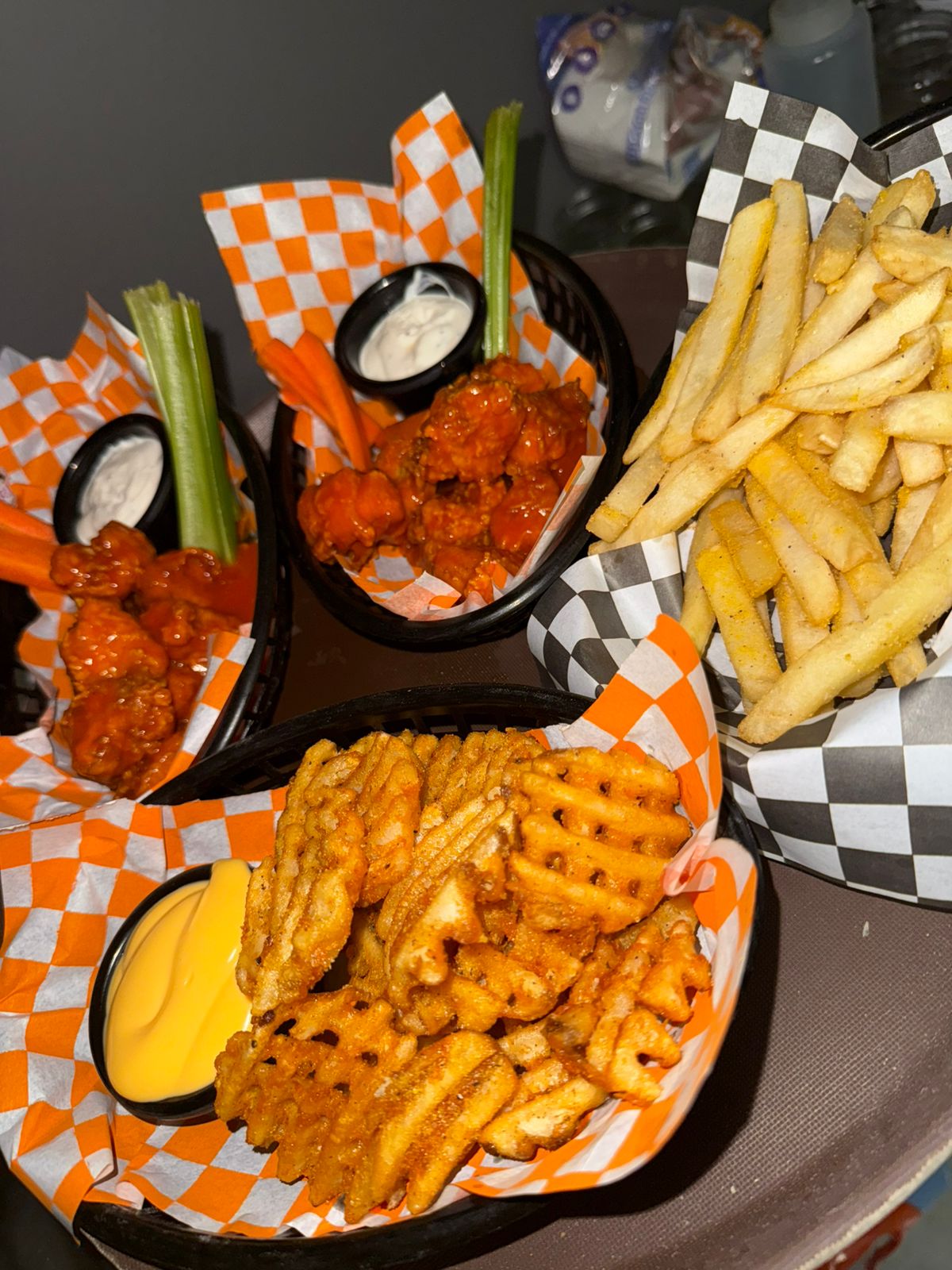 Medio kilo de boneless, bañados en tu salsa favorita orden de papas a la francesa, orden de aros de cebolla, acompañados de verduras y aderezo ranch Salsas: mango habanero, habanero hot, parmahot, búfalo,lemon peper y BBQ (2 salsas a elegir).