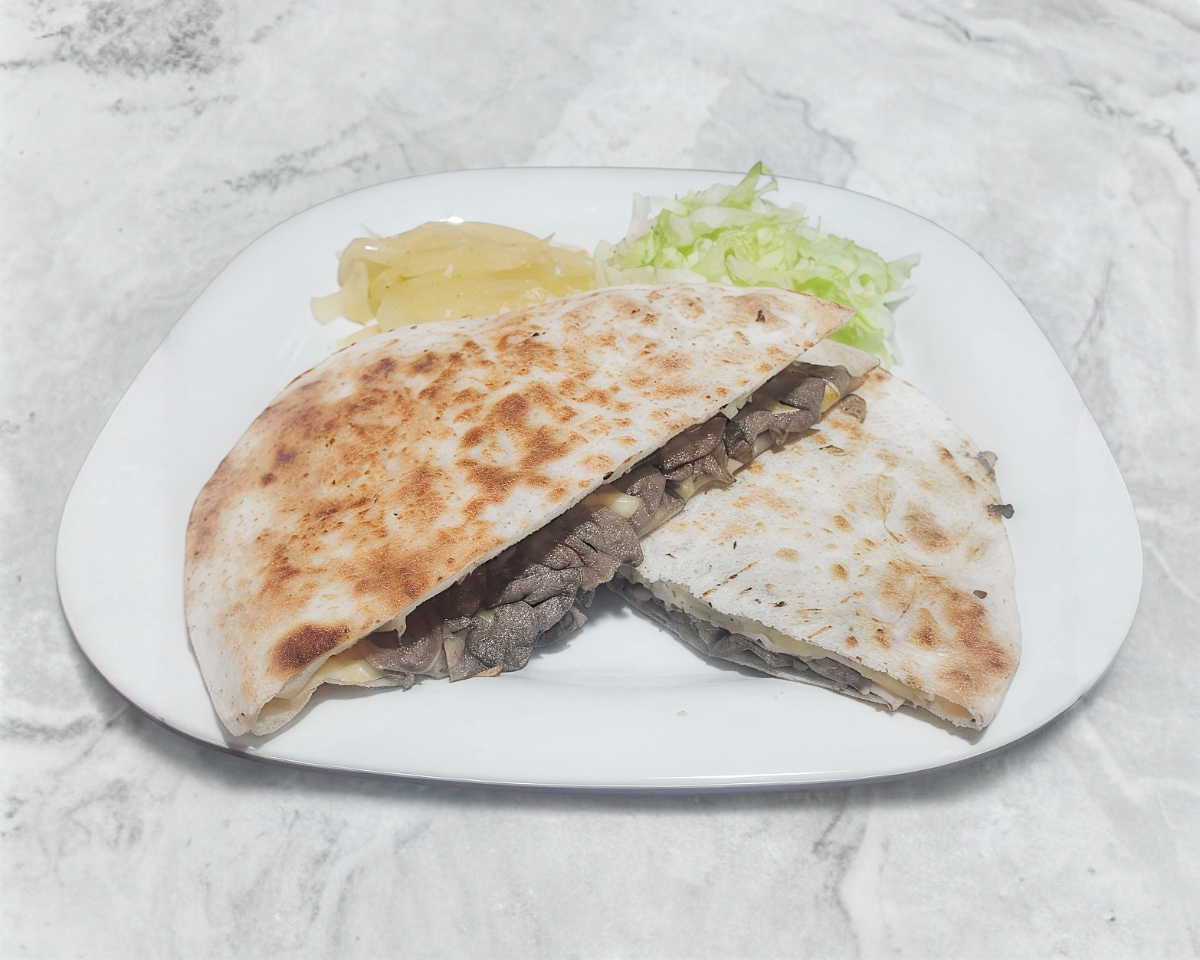 Gringas doble tortilla, con salsa, verdura y cebolla asada.