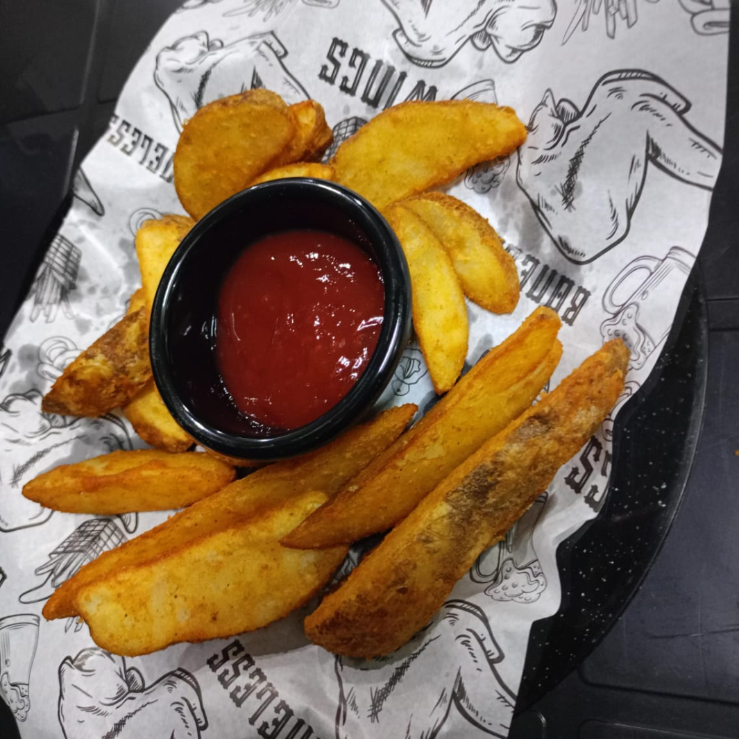 Papas Gajo Acompañadas Con Catsup y Queso Amarillo