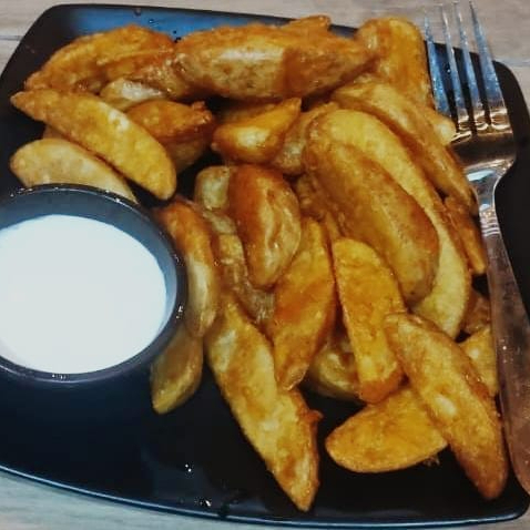 Porción de 180 g de papas fritas tradicionales o tipo gajo, sazonadas con sal, pimienta negra y pimentón.