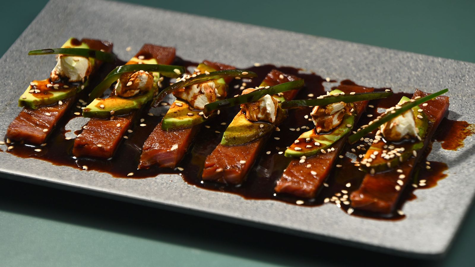 ATUN, AGUACATE,QUESO CREMA,CHILE SERRANO Y SALSA NEGRA