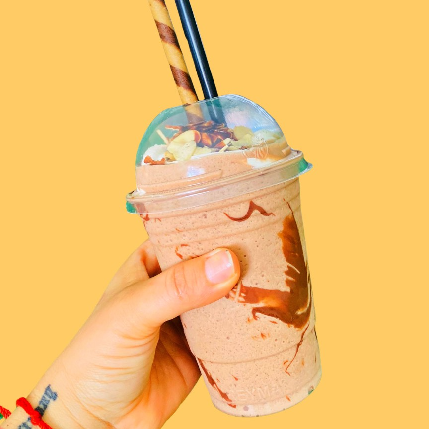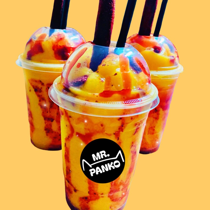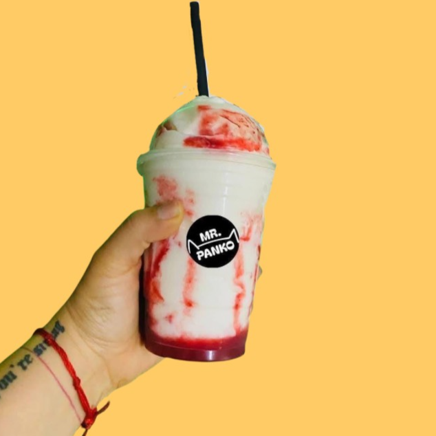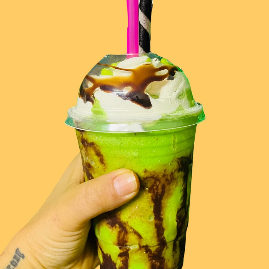 Agua mineral, con sirope, perlas explosivas, gomitas y hielo