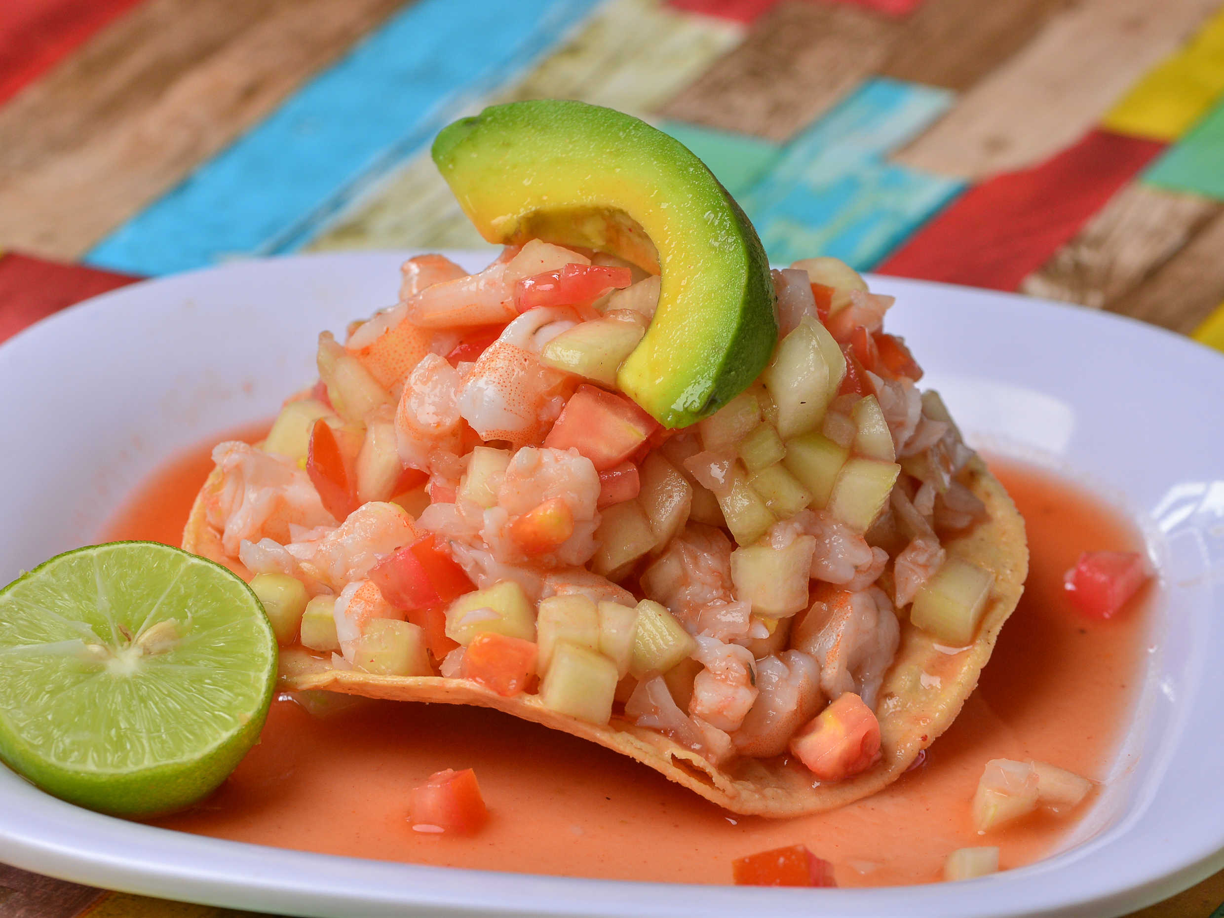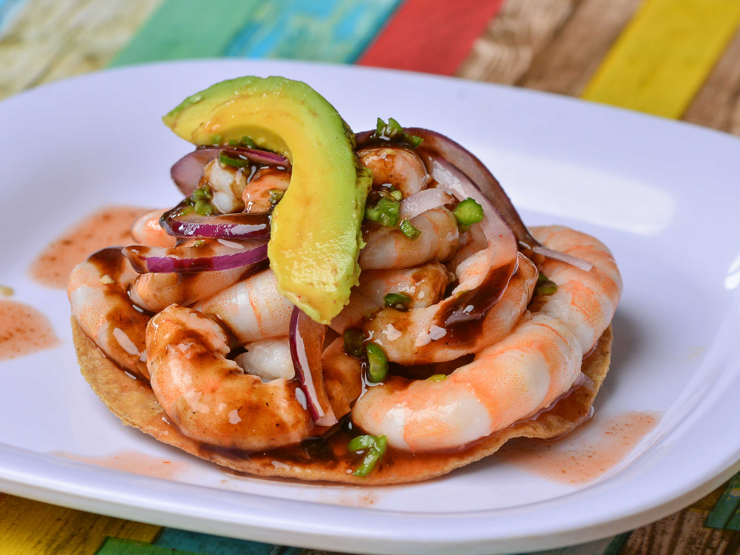 Tostada de Ceviche de Camaron*2 + Refresco Lata 355ml varios sabores*1