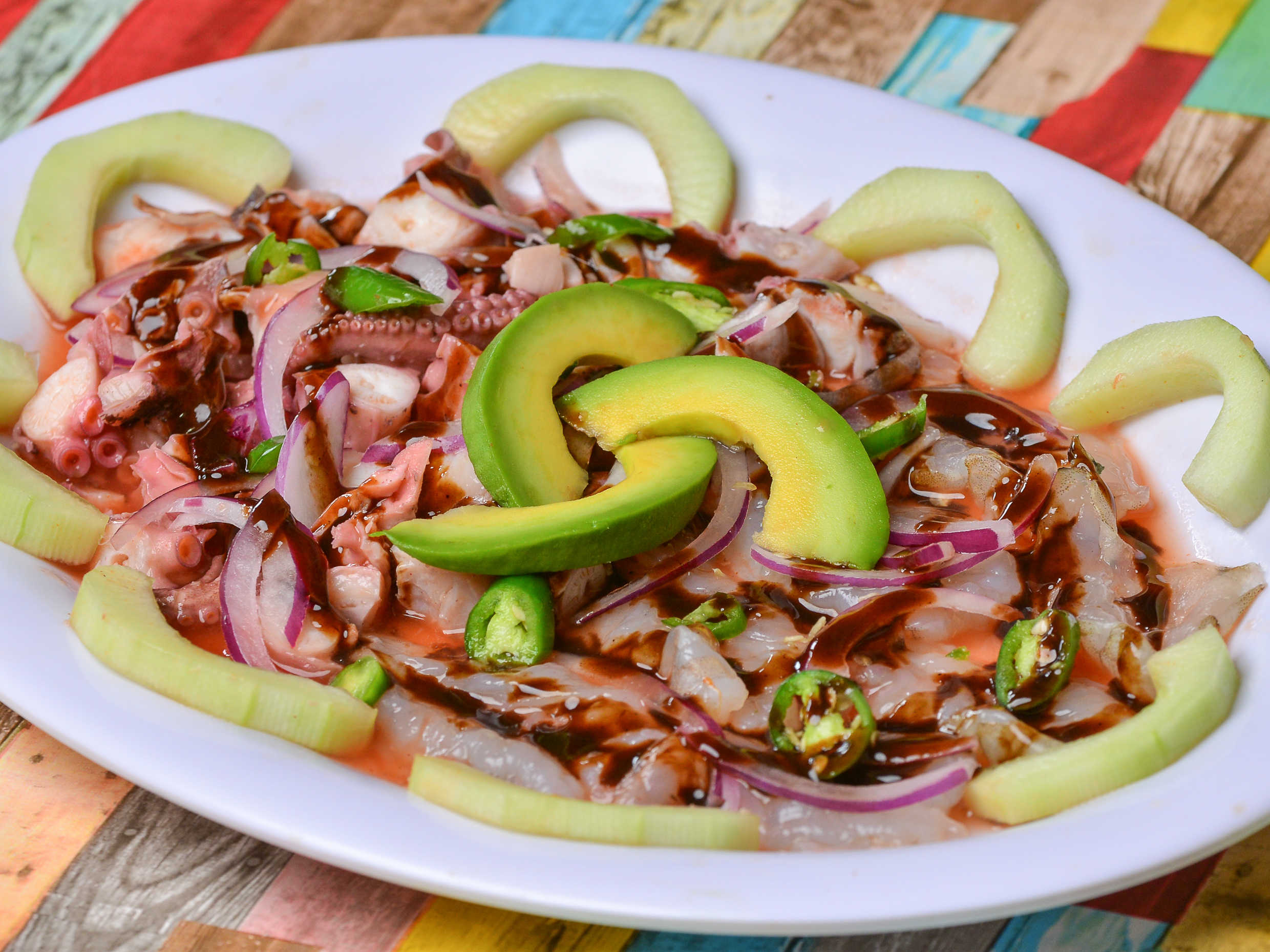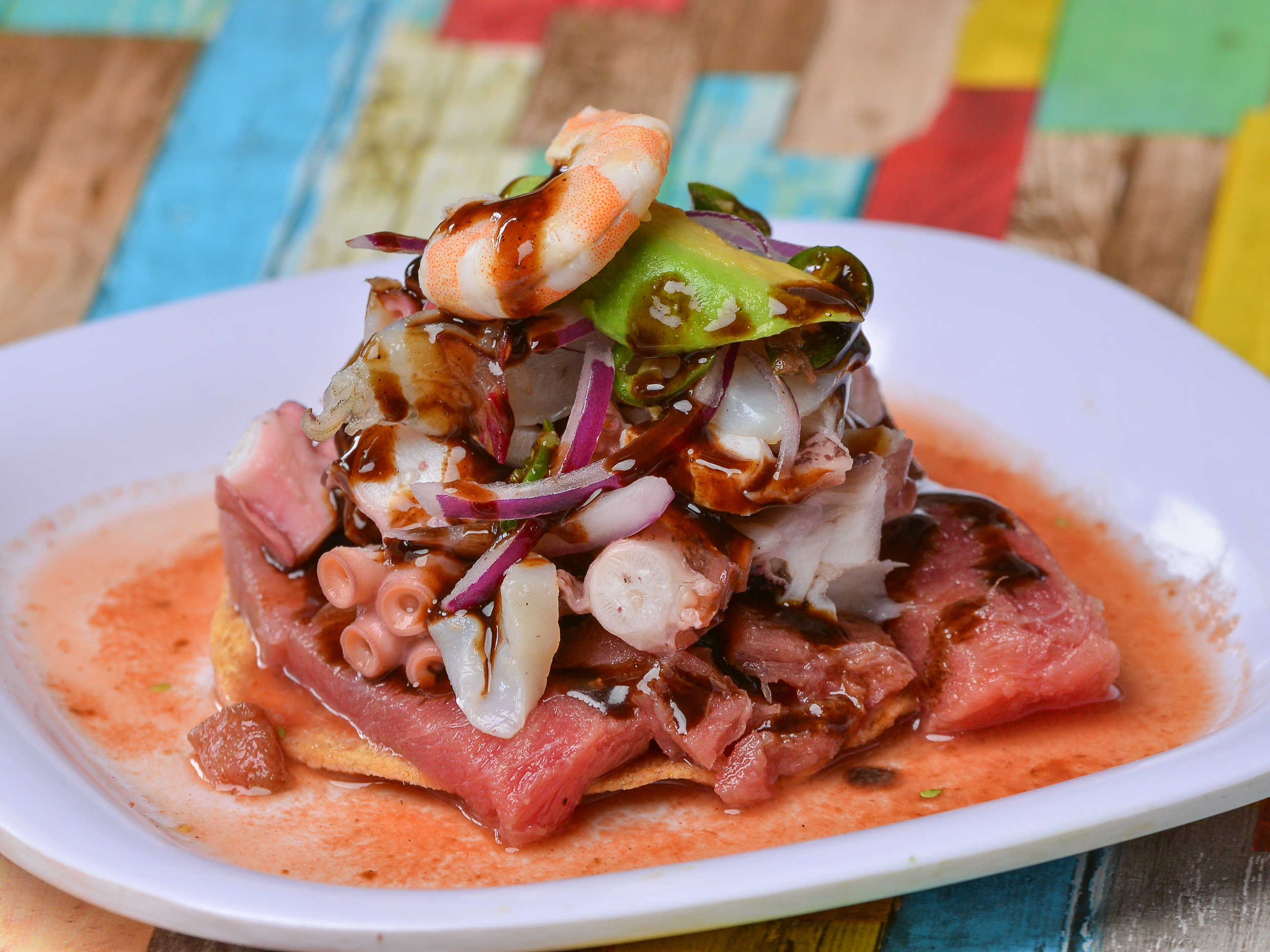 Tostada Ceviche de Pescado*2 + Refresco Lata 355ml varios sabores*1