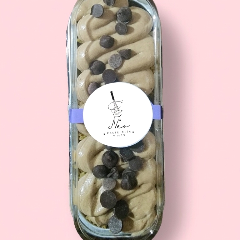Pastel a base de café, chispas de chocolate oscuro y azúcar mascabada, cubierto con un betún de queso crema, chocolate y café.
