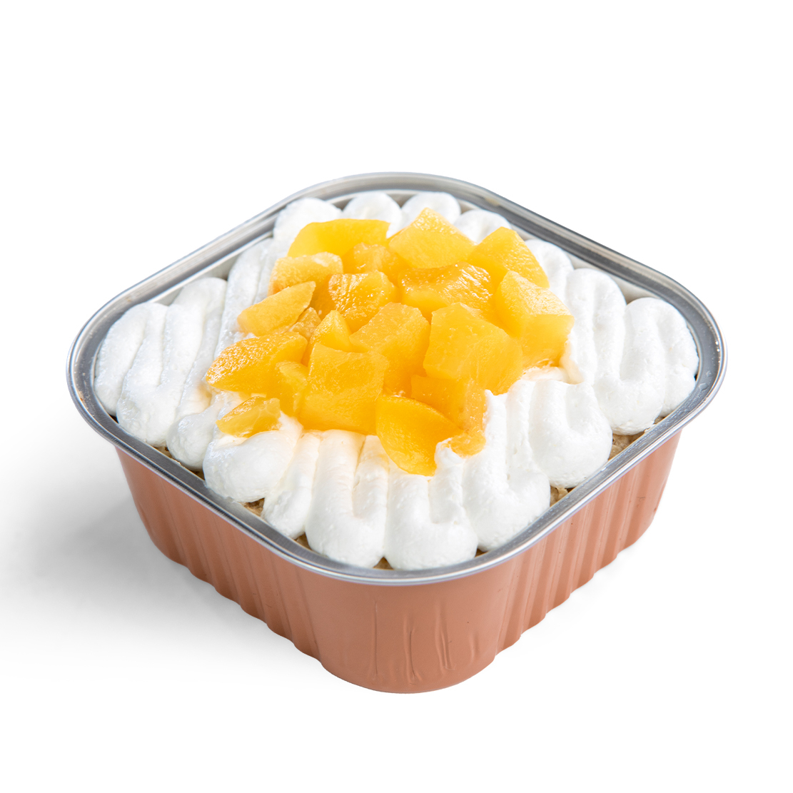 Mostachón cubierto de nuestra crema de queso y durazno.