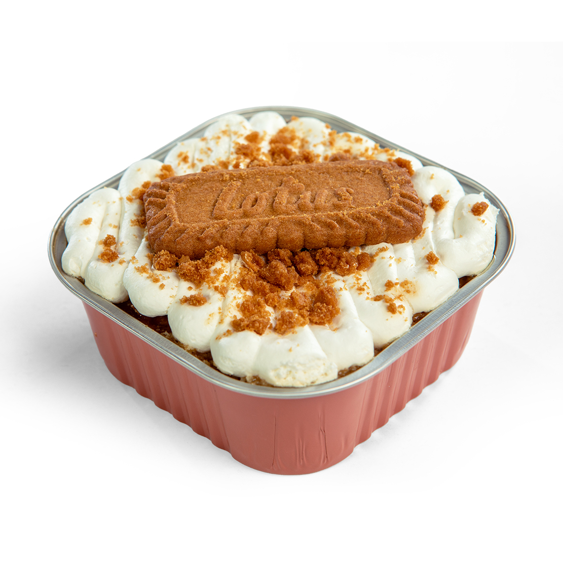 Galleta con un característico sabor acaramelado, chispas de chocolate blanco, spread de galleta Lotus y galleta Lotus por encima.