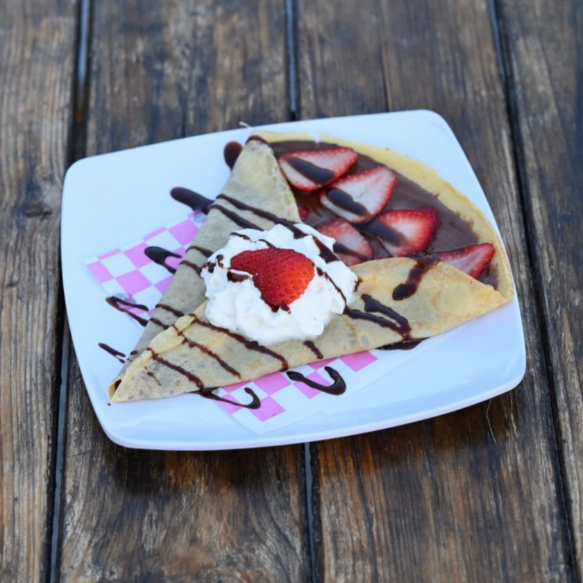 Nuestra deliciosa crepa, escoge tu topping y complemento favorito.