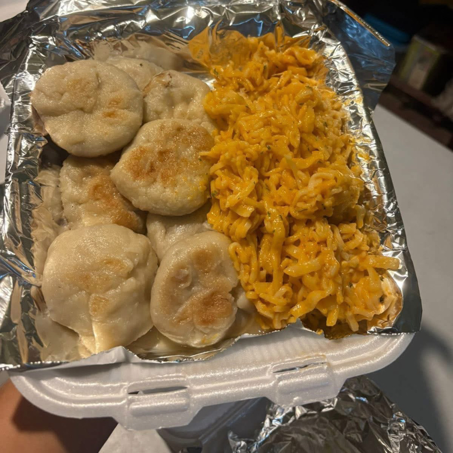 4 pzs de dumplings acompañados de una porción de ramen. incluye salsa de soya y macha