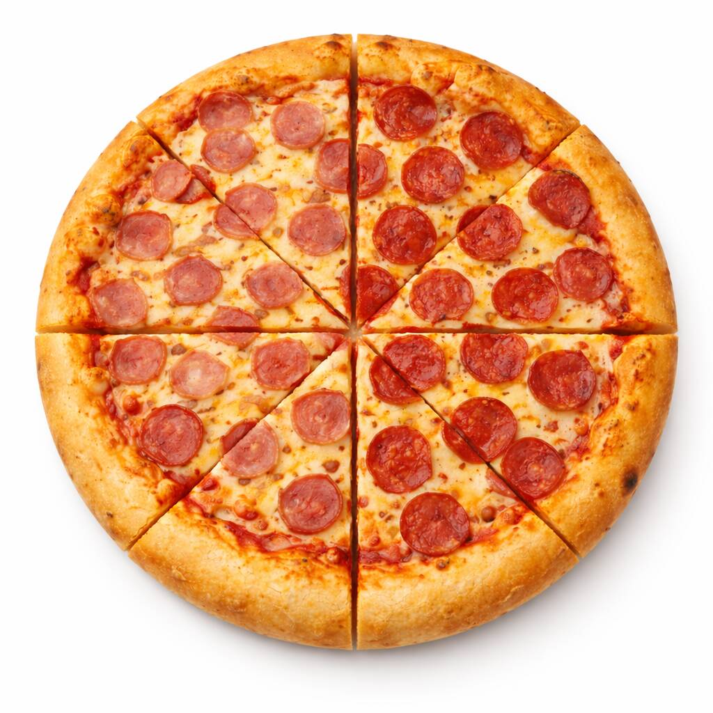 Pizza tamaño familiar de queso, pepperoni, jamón, carne molida, morrón y cebolla