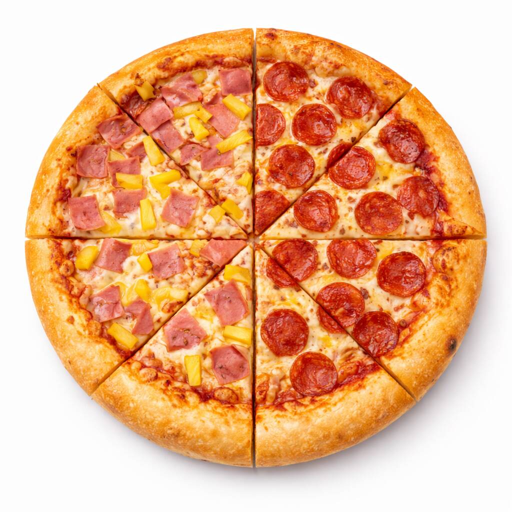 Pizza con la combinación perfecta: mitad pepperoni y mitad hawaiana.