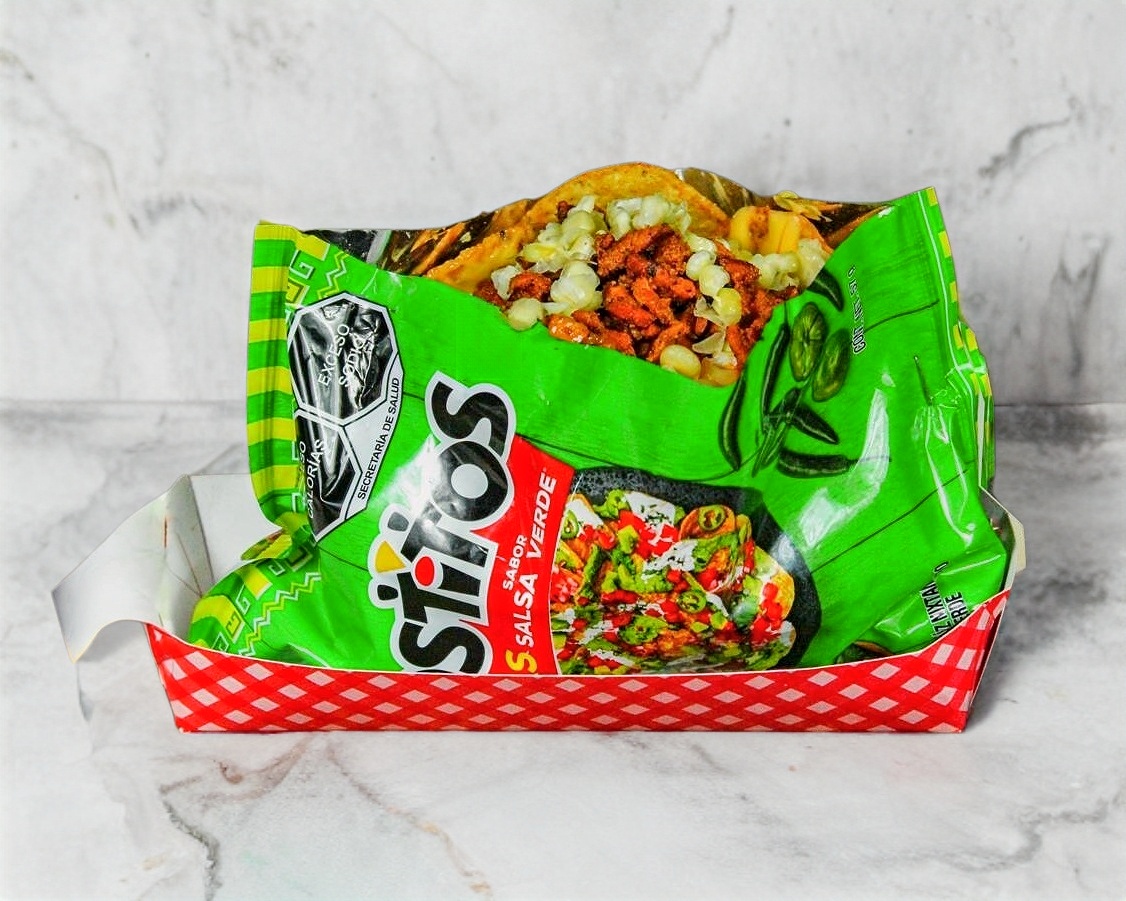 Bolsa de papitas a tu elección preparadas con 2 especialidades. Los ingredientes se envían separados para que no se remojen y los prepares tú mismo.