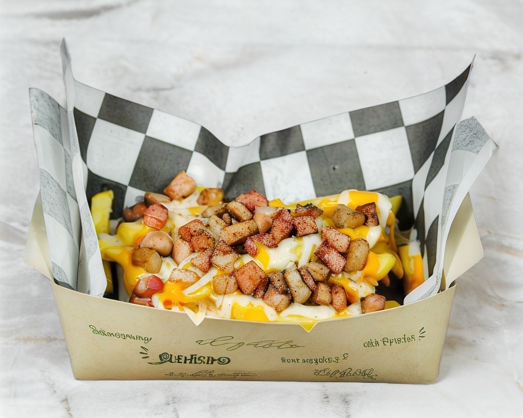 Caja con 250 gr. de papas a la francesa con sal acompañado de aderezos, queso blanco y 4 especialidades.