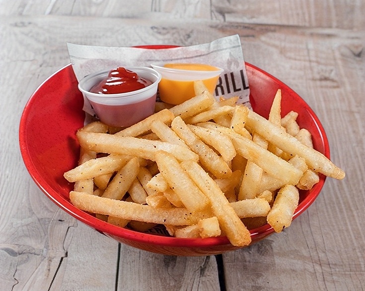 300 Gr. de papitas fritas sazonadas con lemon pepper, cátsup y queso amarillo.