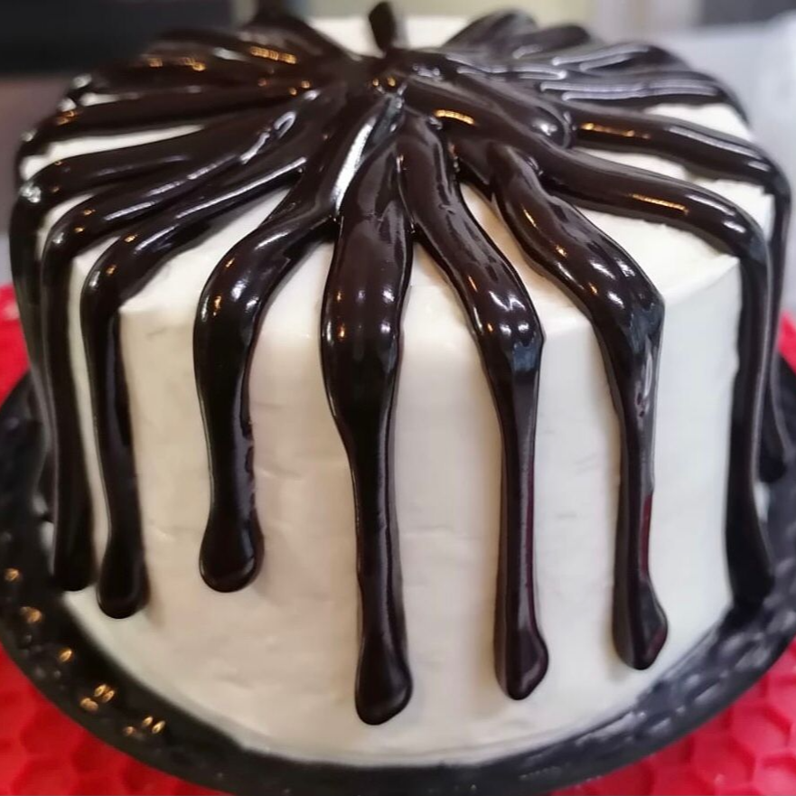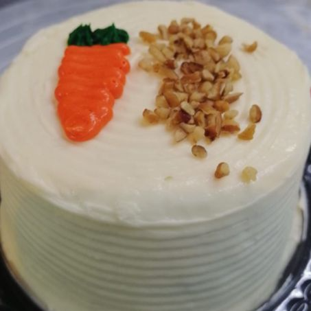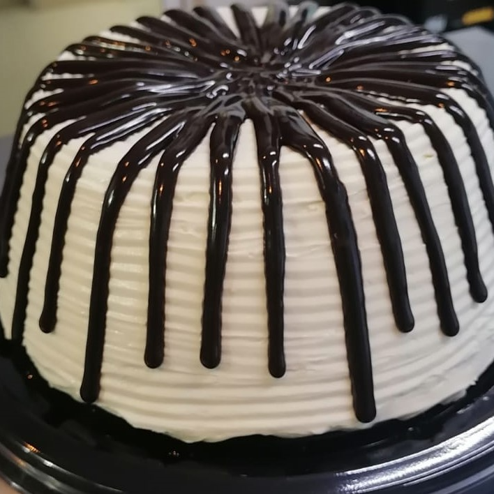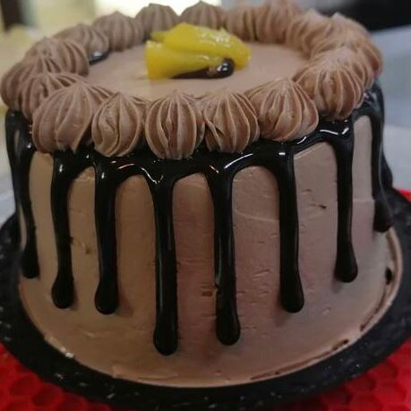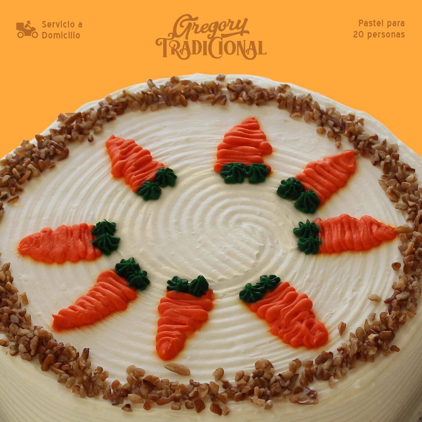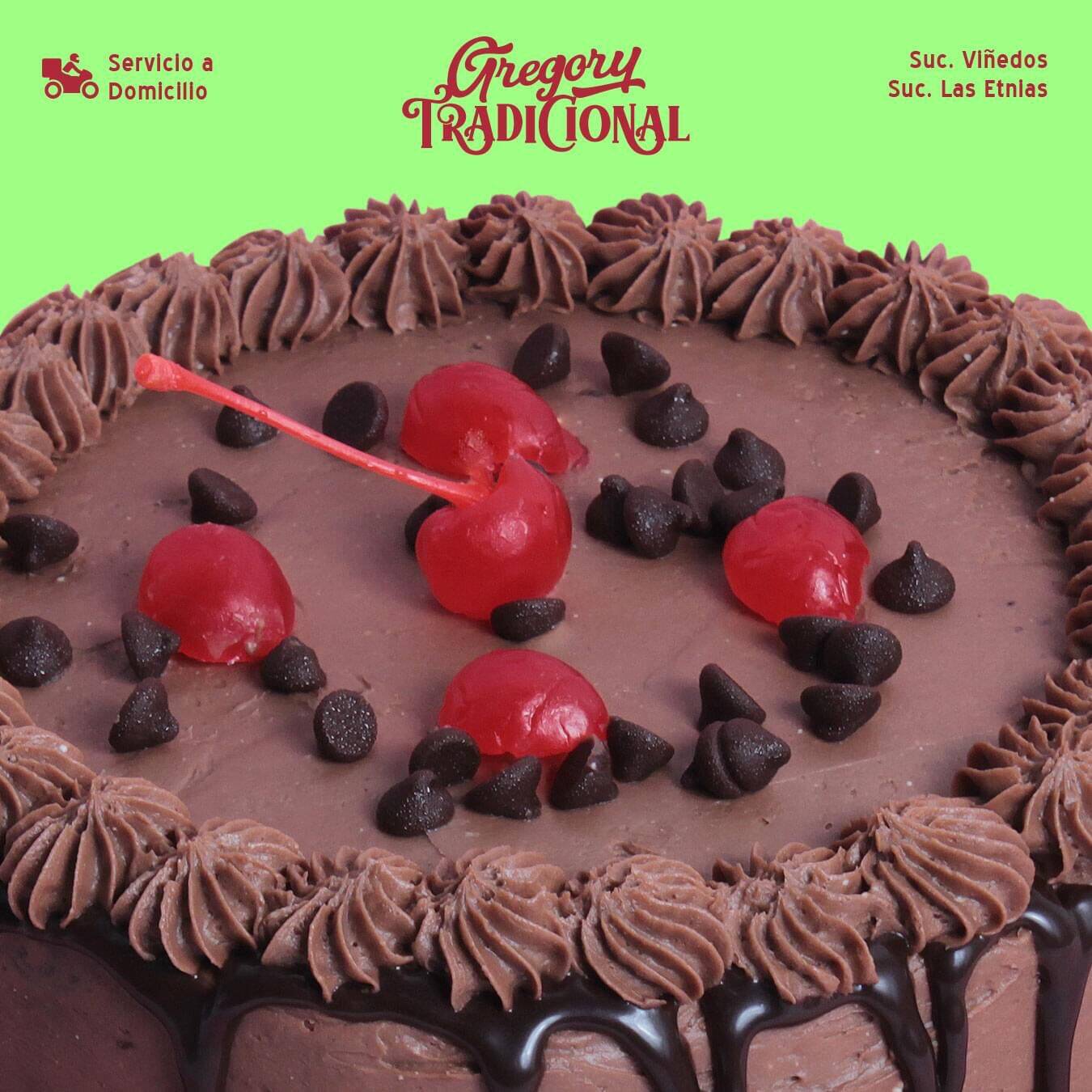 Pan esponja mojado con 3 leches, betun de vainilla, relleno de trocitos de duraznos y chorreado de cajeta. Para 12 porciones