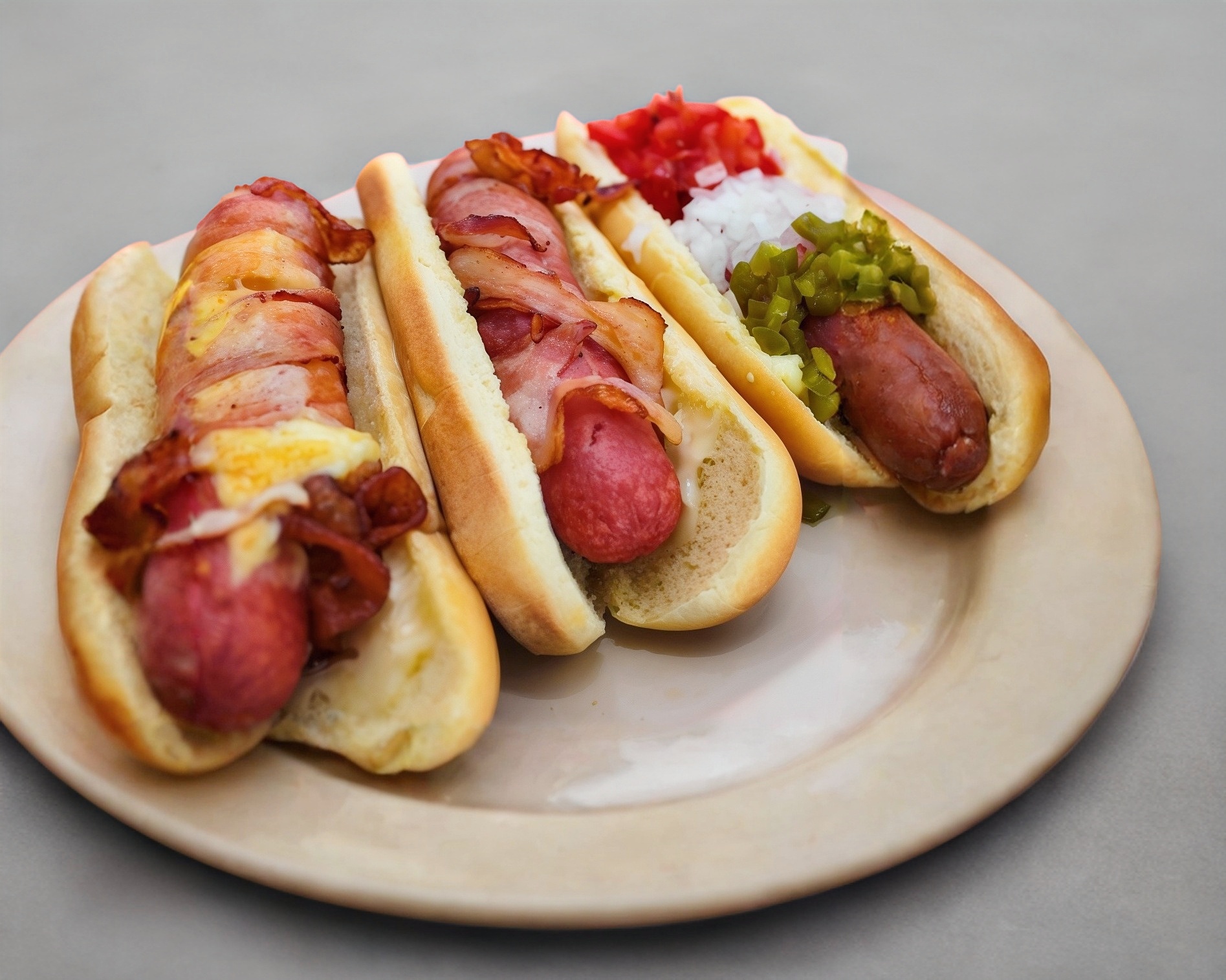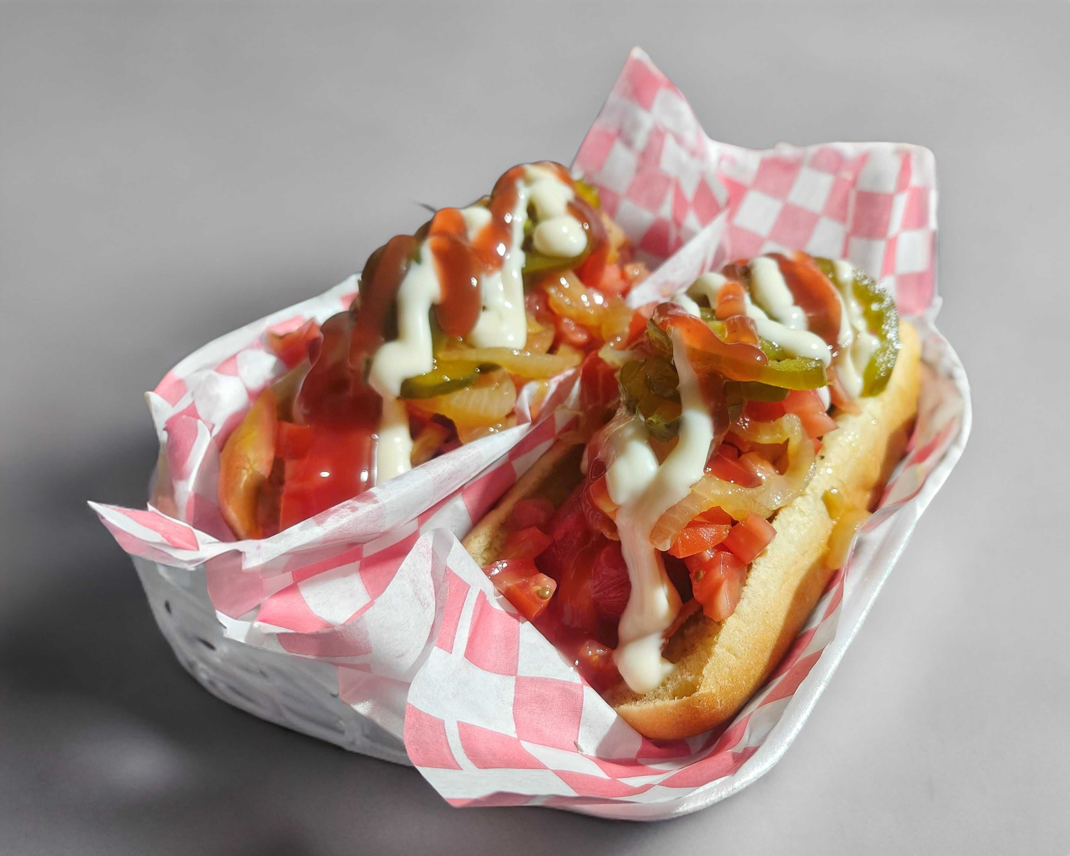 Pan a elegir + Salchicha Frankort envuelta en tocino + ingredientes a elegir..