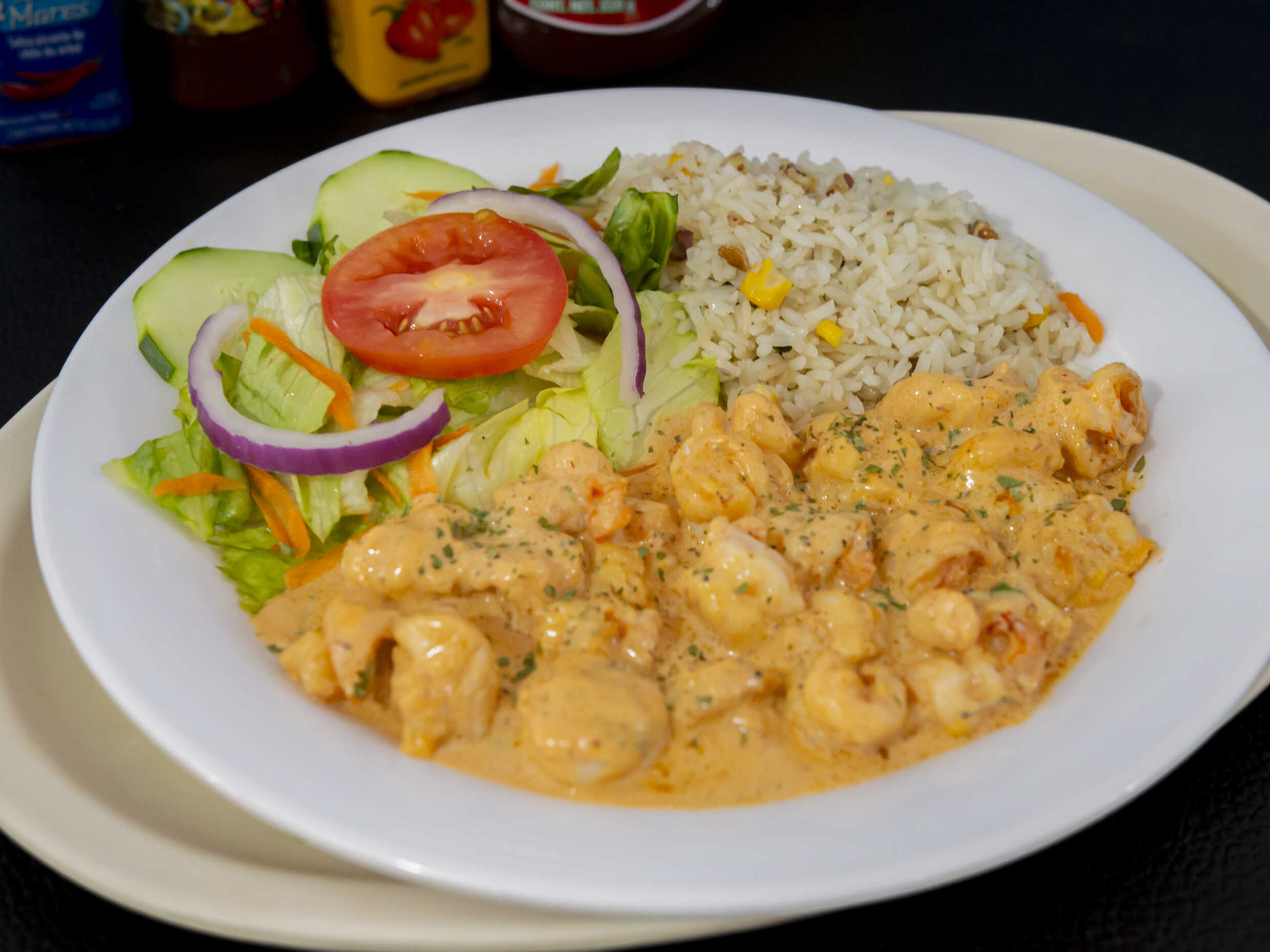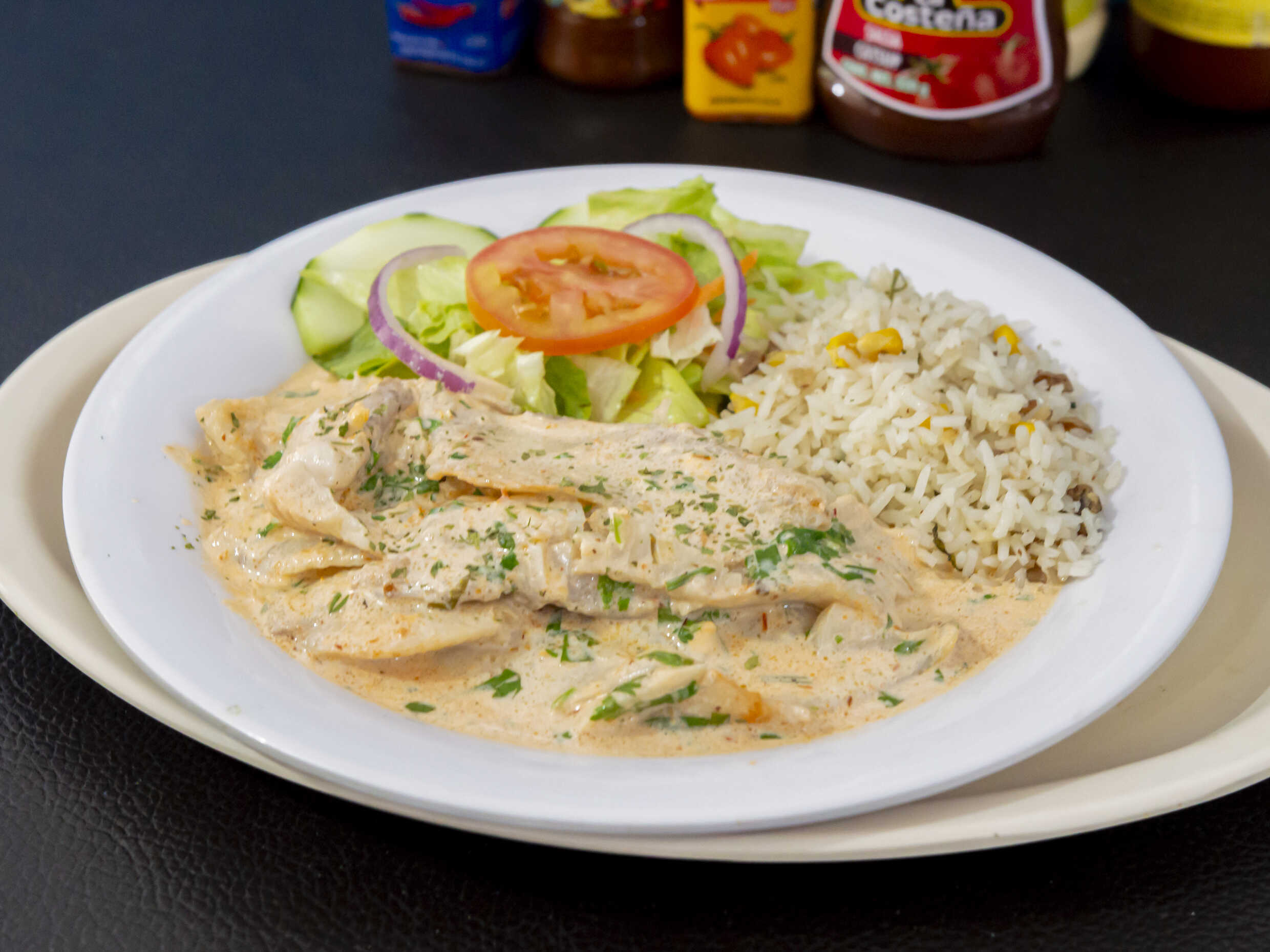300 gramos de filete , con salsa de chipotle aconpañado de 150 gramos de arroz