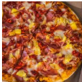 Con queso, jamón, tocino, champiñones, piña y chorizo tamaño familiar.
