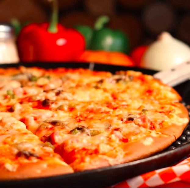 Pepperoni, jamón, champiñones y pimiento morrón.