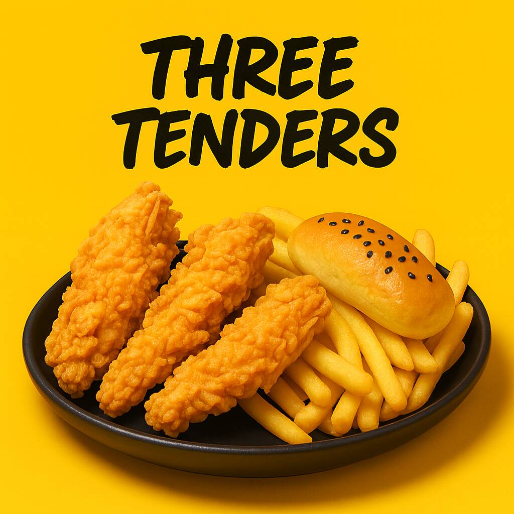 3 TENDER DE 80 GR C/U CON PAPAS Y 1 BISKET