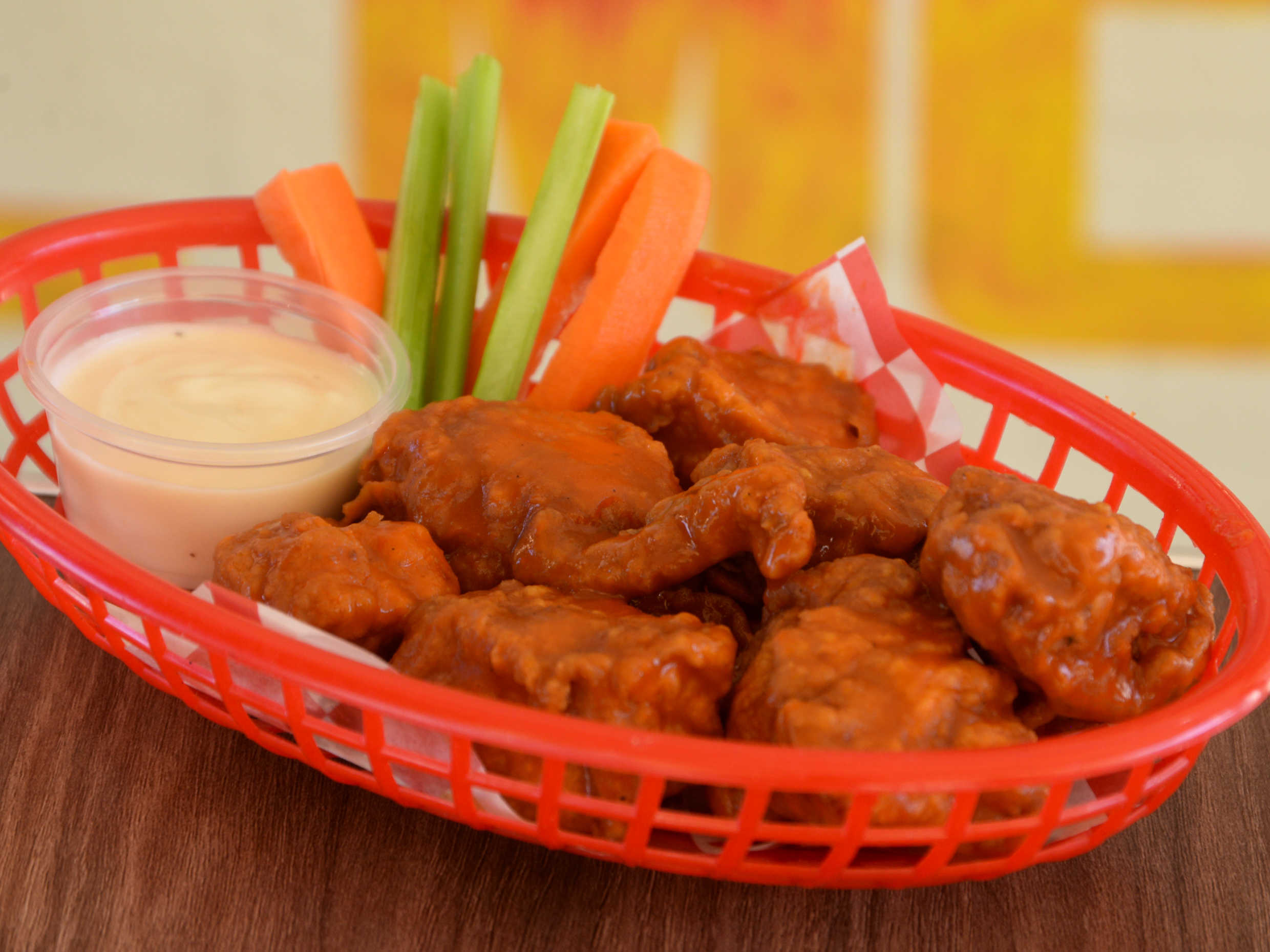 Deliciosos trocitos de pechuga, bañados en cualquiera de nuestras salsas, acompañados de vegetales, papas gajo y ranch.