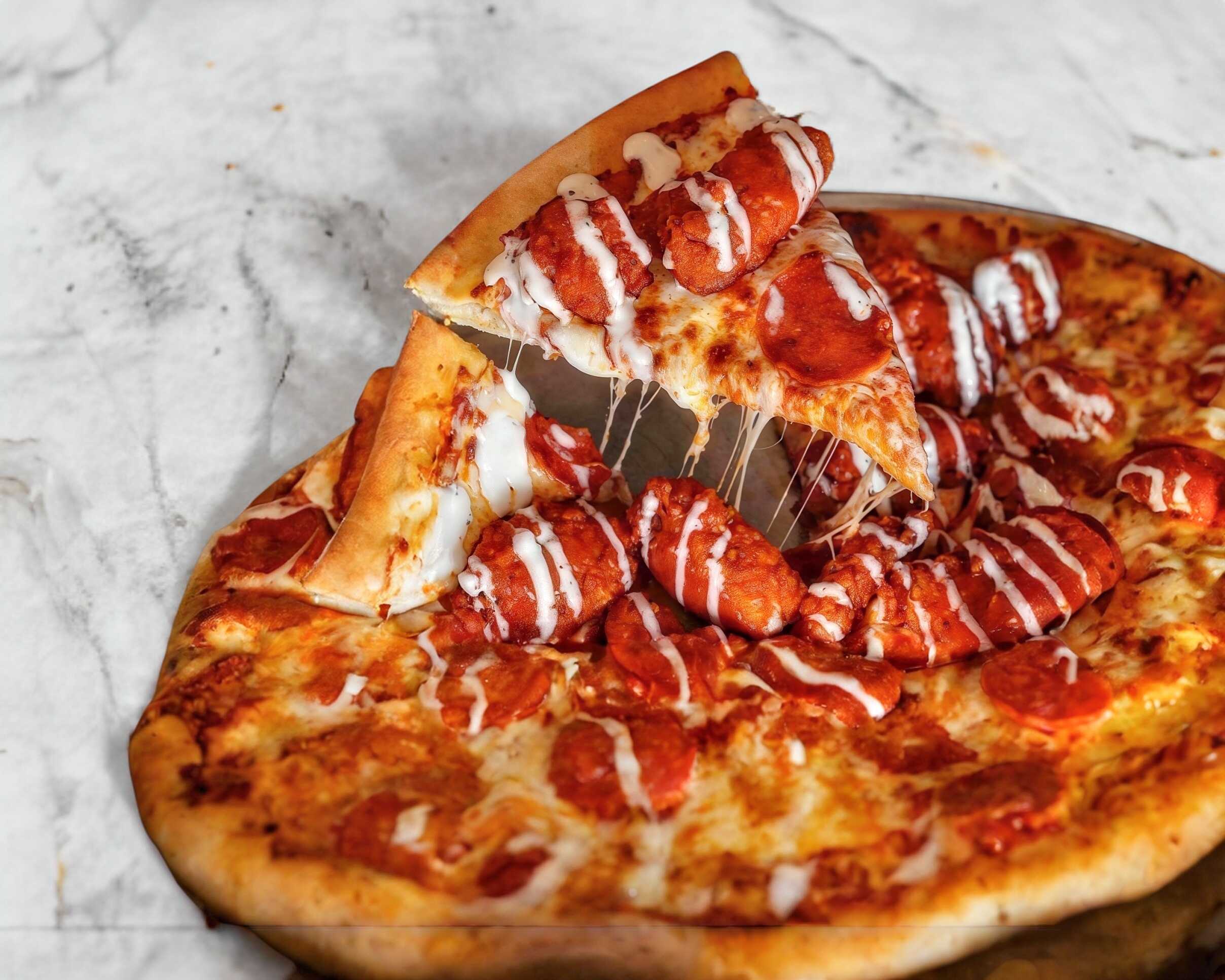 Tamaño familiar con carne al pastor, piña, jalapeño, chorizo y salsa de la casa.