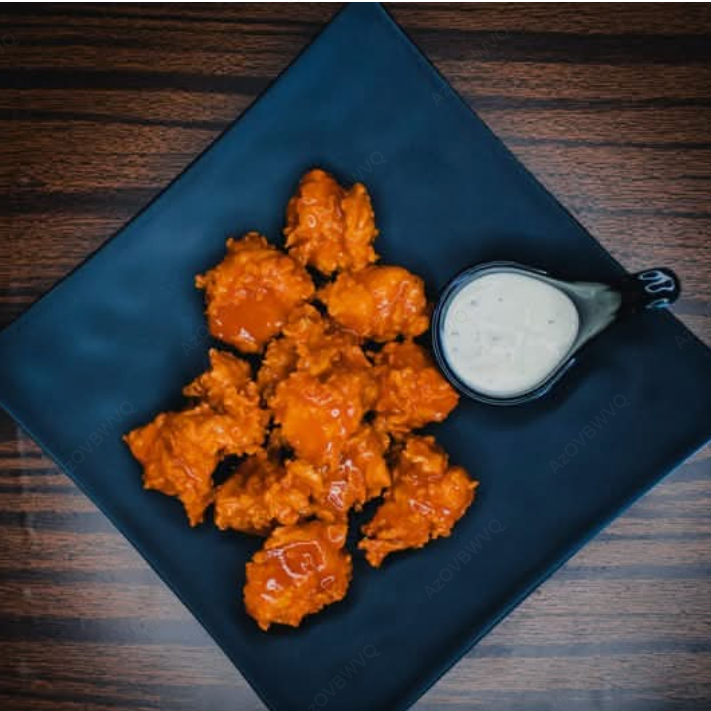 10 pzas De boneless de pechuga de pollo bañados en tu salsa favorita, incluye papas crisscut.