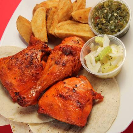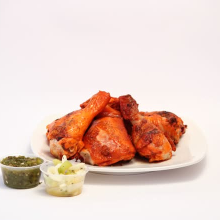 Medio kilo de pierna y muslo, incluye salsa y cebolla en vinagreta.