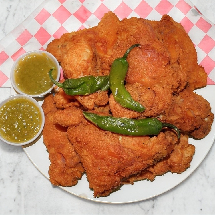 PIERNA Y MUSLO EMPANIZADA INCLUYE CHILES TOREADOS Y SALSA JALAPEÑO