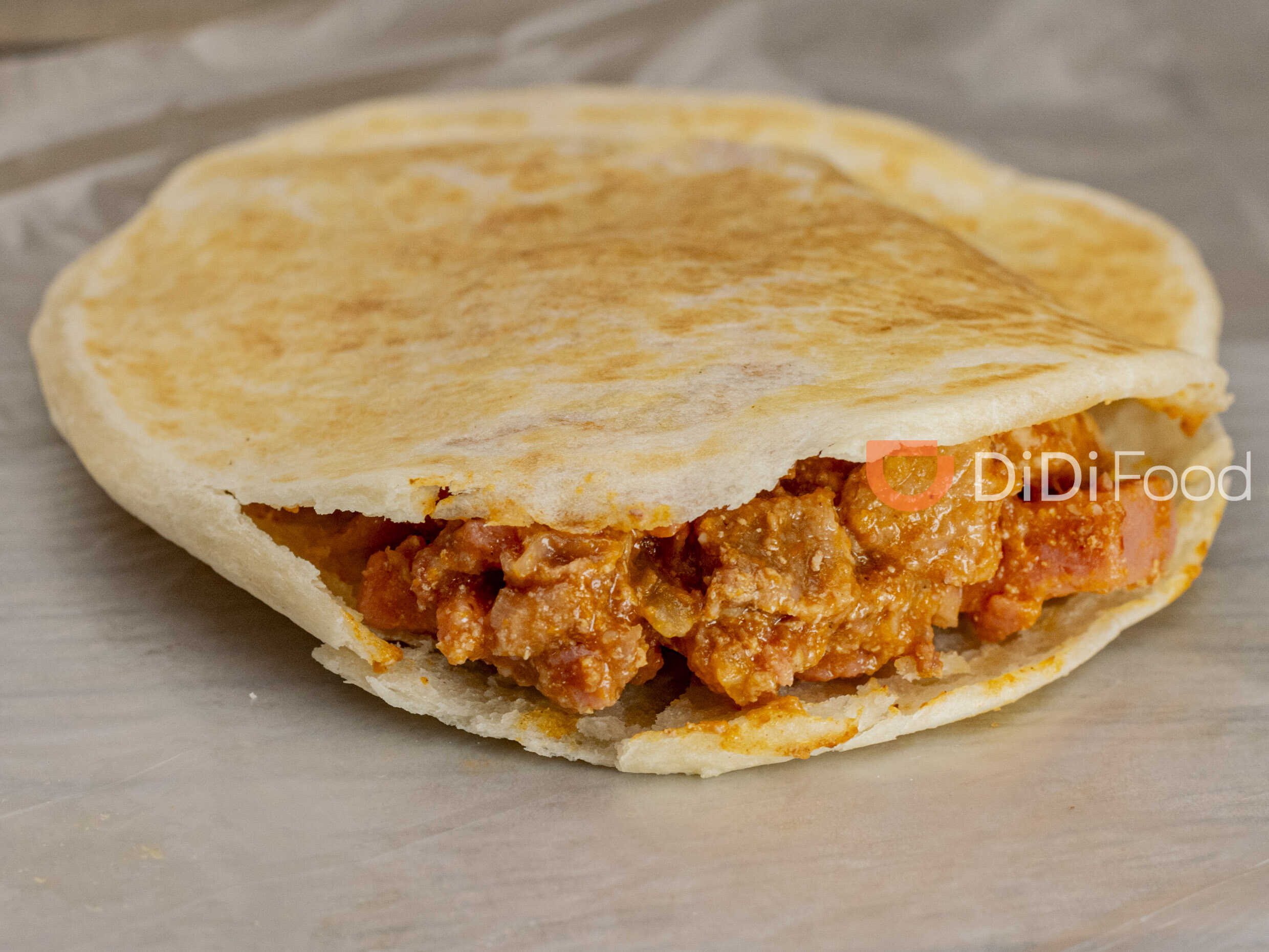Deliciosa gordita rellena de guisado rojo con papas. Elige tu favorita en harina o maíz