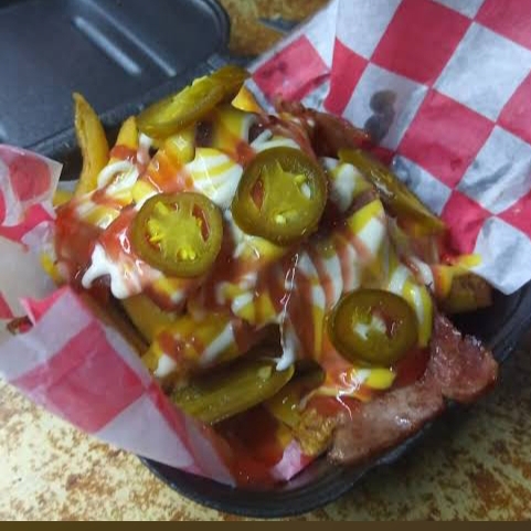 Papas a la francesa, boneless, salchicha para asar, tocino, aderezos