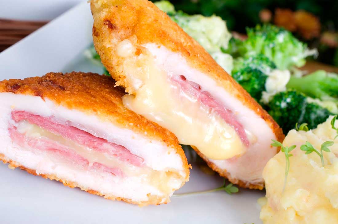 Jamón, aguacate y queso panela.